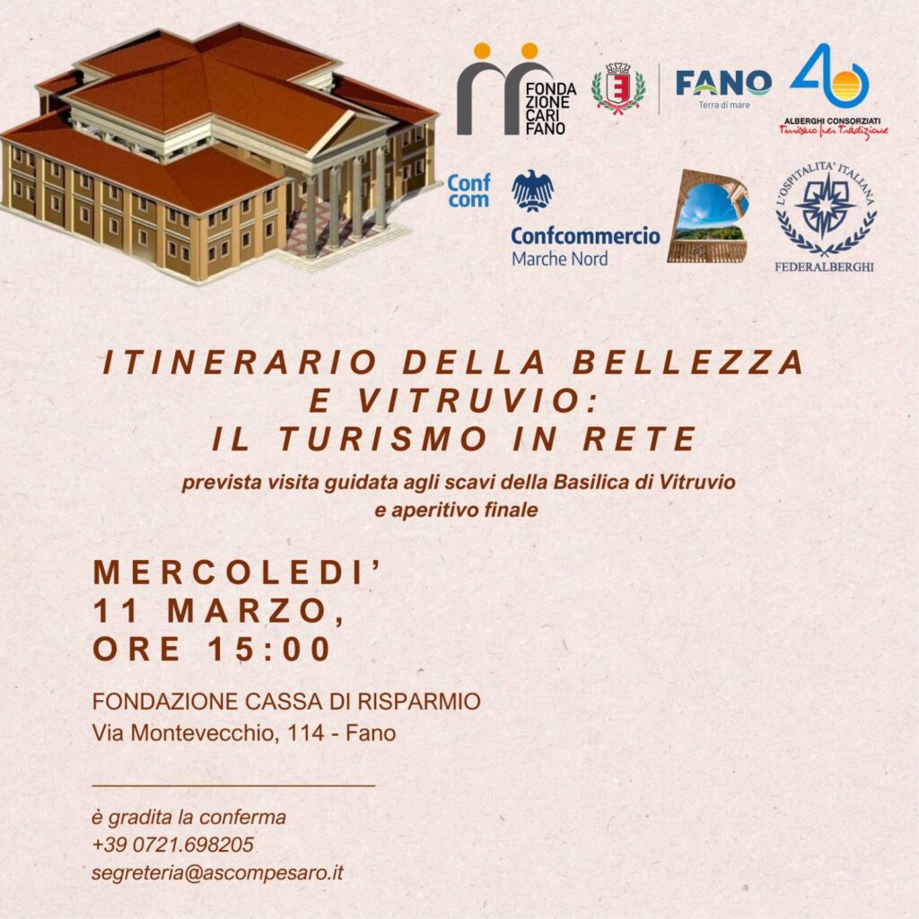 In tal senso rientra la giornata dal titolo “Itinerario della Bellezza e Vitruvio: il turismo in rete”, in programma mercoledì 11 marzo, promossa da Alberghi Consorziati con Confcommercio Marche Nord, insieme al Comune, Fondazione Carifano e Federalberghi.